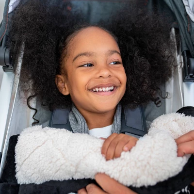 This warm outdoor baby blanket is safely designed for babies and toddlers (20lbs and up) let your baby feel the security of a calming hug wherever you go. This winter stroller blanket takes the warmth of snuggly soft sherpa and upgrades it to perfectly fit in your baby’s stroller. This way, they can sleep anxiety-free, even when you’re far away from home. This warm outdoor baby blanket uses gentle pressure to help your baby alleviate sensory overload, fall asleep faster and stay asleep with ease. You can now enjoy crisp winter walks and ensure your baby can safely enjoy a dose of nature.