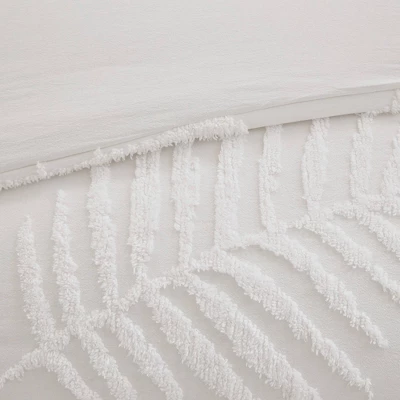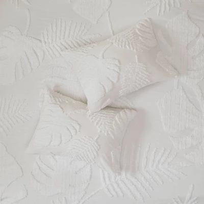 Bring a coastal charm to your bedroom with the Ceiba 3pc Tufted Cotton Chenille Palm Duvet Cover Set. The 100% cotton chenille duvet cover features tufted tropical palm leaves on the face for a casual coastal allure. Matching shams mirror the design of the comforter, completing the tropical duvet cover set. Machine washable for easy care, this tufted cotton chenille duvet cover set serves as the perfect complement to a beach style bedroom decor. Button closures help secure a comforter insert within the duvet cover and four inside ties in the corners help prevent it from shifting (insert is NOT included). Due to the nature of the chenille fabric, some shedding will occur naturally in the first 3-4 washes.