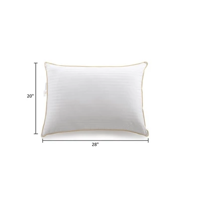 Experience luxurious comfort every night with the Cheer Collection Elegant Cotton Sateen Striped Down Alternative Pillow. Thoughtfully designed to mimic the softness of down, this pillow is filled with 100% polyester microfiber, offering you all the plushness without the high maintenance requirements of down. The medium firmness of this pillow ensures it conforms perfectly to your neck, head, and shoulders, paving the way for a peaceful slumber.Crafted with a 300-thread count cotton sateen fabric, it feels soft against the skin while its elegant striped pattern elevates the aesthetics of any bedding ensemble. Whether you’re a back, side, or stomach sleeper, this pillow adapts to your unique sleep posture. Additionally, it’s hypoallergenic, making it an excellent choice for those who are sensitive or prone to allergies.Caring for this luxury pillow is a breeze. The machine-washable construction allows you to maintain its fresh and clean look with minimal effort. Available in both Standard and King sizes, each pillow is meticulously measured for perfection. Our pillow also comes with a piped edge ensuring durability and longevity. Choose the Cheer Collection Elegant Cotton Sateen Striped Down Alternative Pillow and redefine your sleeping experience.