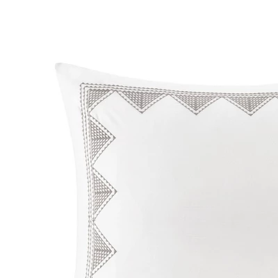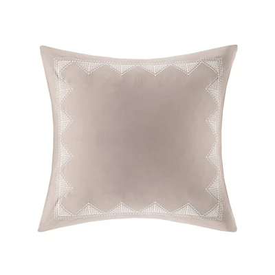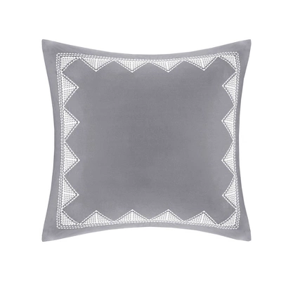 Add a touch of drama to your bedding with the Isla Cotton Embroidered Euro Sham. This 26×26″ sham features a geometric design embroidered along the edge of a solid ground. This sham features a topical antimicrobial treatment that prevents bacteria buildup to keep the fabric fresher, longer. This euro pillow cover can be easily mixed and matched with your home decor to create that perfect look. Inlcudes one euro pillow cover, Filler pillow is NOT included.