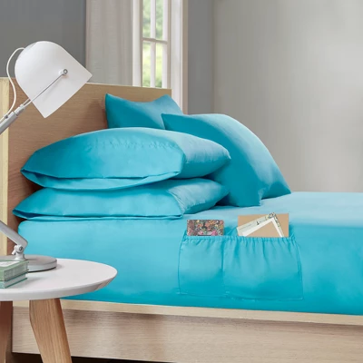 Keep your devices close by with the Intelligent Design Microfiber Sheet Set with Side Storage Pockets. This soft microfiber sheet set is wrinkle-free and is OEKO-TEX certified for health and wellness. The fitted sheet features elastic plastic on both sides that help organize your cell phone, tablet, or keys by keeping them within easy reach.