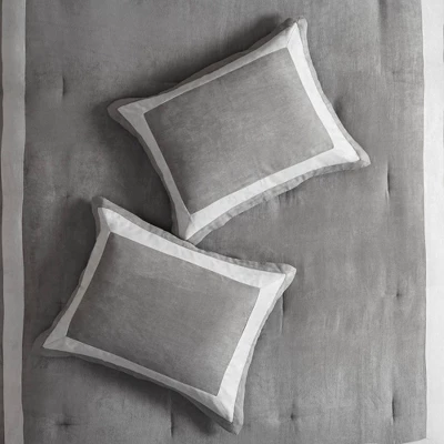 The Noah 7 Piece Microsuede Comforter Set brings a rich and elegant update to your bedroom. This microsuede comforter and 2 matching shams feature a unique pieced color blocking design to create a luxurious modern allure. A solid bed skirt coordinates handsomely with the comforter, while 3 decorative pillows provide textural finishing touches to the hotel style comforter set. Machine washable for easy care, this transitional style comforter has an antimicrobial odor protection treatment that provides built-in freshness protection, inhibits growth of odor causing bacteria, and keeps the fabric newer, longer. Items in the set may come in a rolled or compressed packaging, which will need to be fluffed up or steam ironed before use to remove wrinkles.