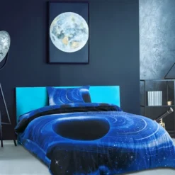 PiccoCasa Galaxies Duvet Cover Sets 1 Duvet Cover 1 Flat Sheet 1 Pillow Shams 3 Piece Twin Navy Blue