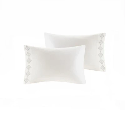 - Set includes comforter, 2 matching shams, 2 pillow case, 3 embroidered decorative pillows and 1 bed skirt