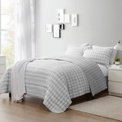Soft and inviting, the Checkered with Embroidered Line Quilt and Pillow Sham Set, is an ideal layer any time of year. The fabric is prewashed for a natural, homespun look and soft hand. And with its Checkered pattern, it has a classic look that’s always in style. Mix it with crisp whites or play it up with patterns – changing the look is that easy. Oversized fit gives you the perfect amount of overhang! This luxurious set is available in Twin, Queen and King. Oversized Checkered with Embroidered Line Prewashed Homespun look Sham features envelope closure Quilt reverses to same Face Fabric:100 GSM Washed Microfiber; Fill:130 GSM 100% Polyester; Backing:100 GSM Washed Microfiber Machine washable